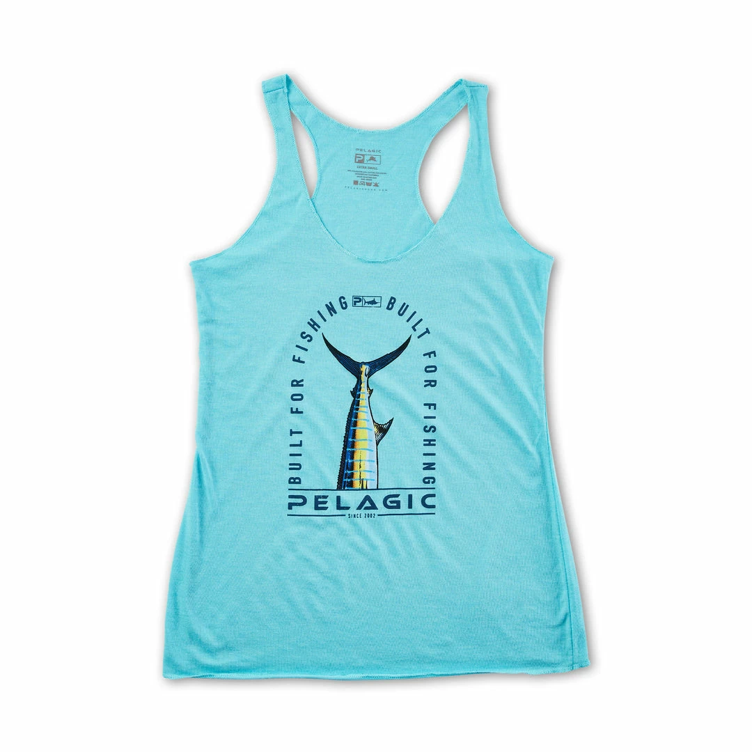 Made of an ultra-soft, tri-blend, cotton-poly fabric with Rayon synthetic fibers, this tank offers the ultimate comfort fit for your lifestyle on or off the water. Featuring a large blue marlin fishtail graphic on the front chest.